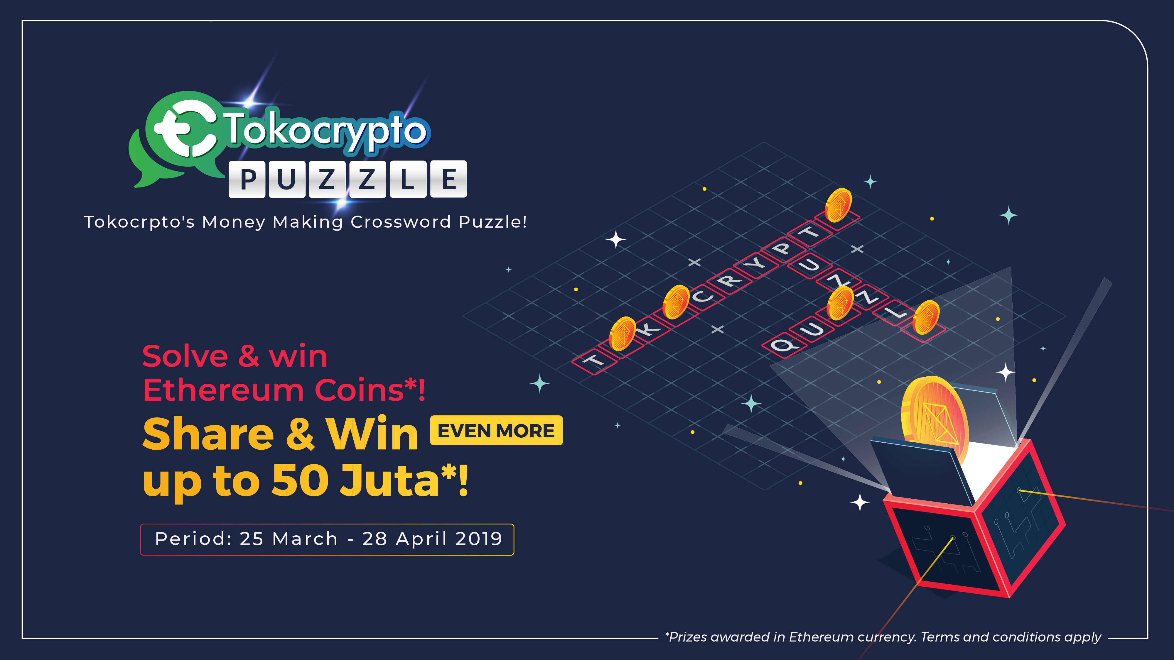 Mulai hari ini, tanggal 25 Maret 2019, Tokocrypto mengadakan Teka Teki Silang dengan total hadiah lebih dari 50 Juta untuk para pemenang.