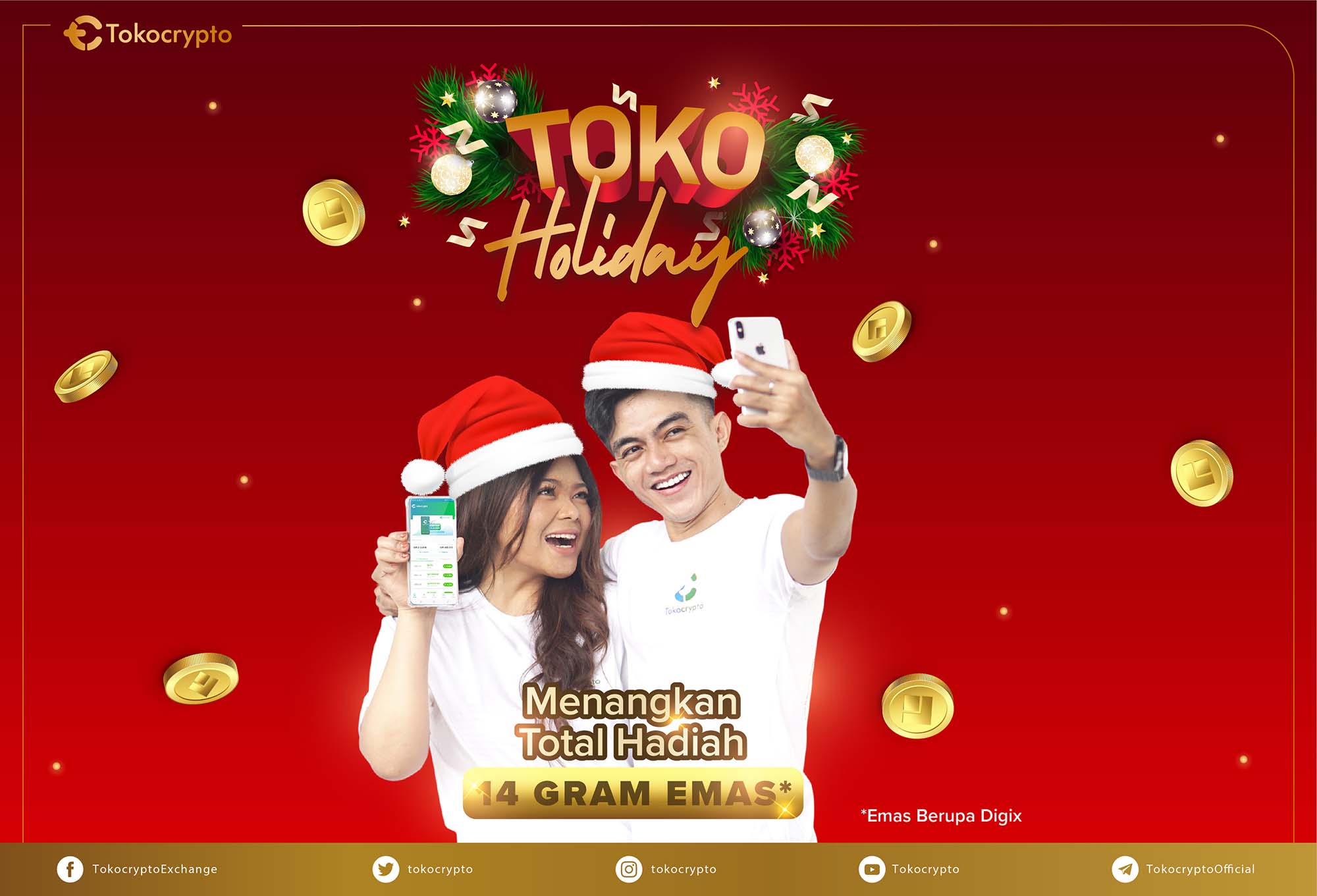 Dalam rangka menyambut hari Natal dan tahun baru 2020, Tokocrypto akan mengadakan kompetisi foto dan video di media sosial dengan total hadiah sebanyak 14 gram Emas Digix.